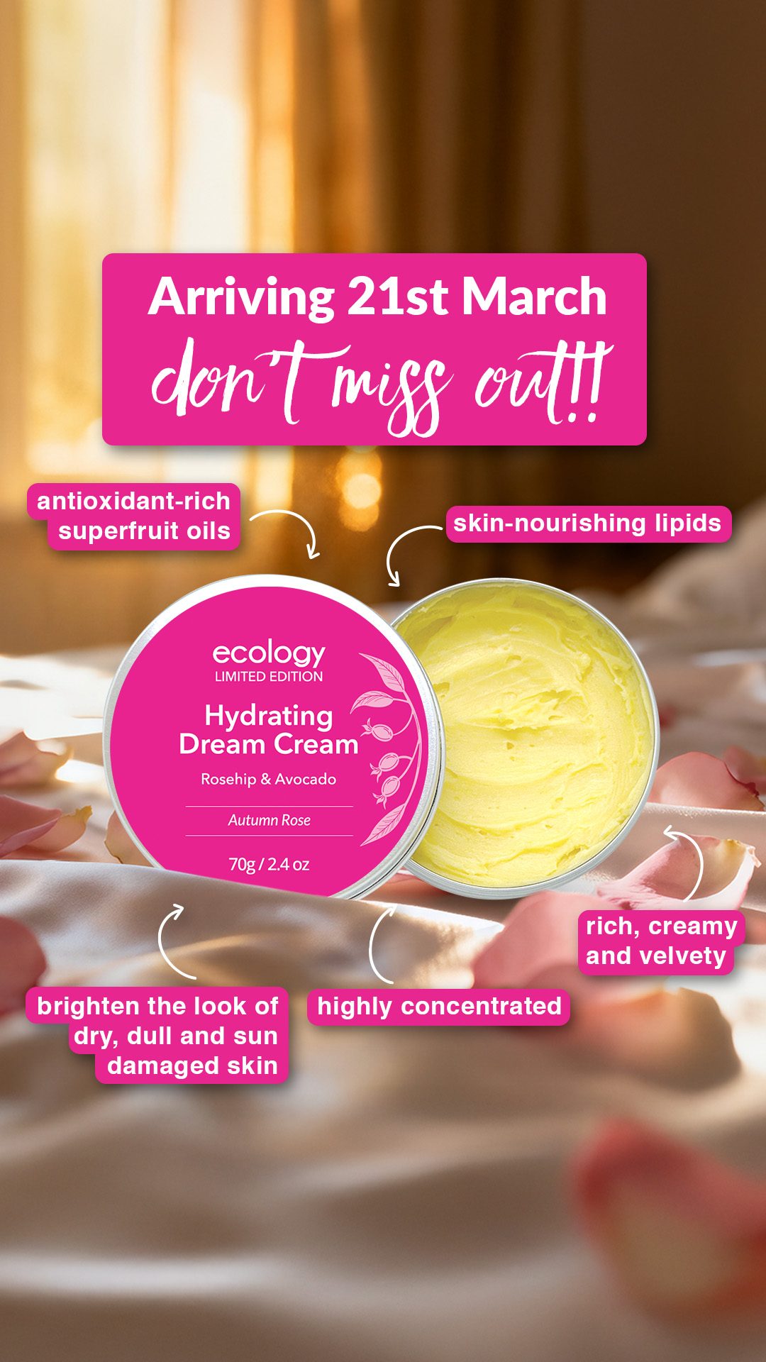 Sign up now to get on the Dream Team and be one of the first to access our luxurious Rosehip & Avocado Limited Edition Dream Creams for sun-damaged skin this Autumn – including a beautiful new scent!