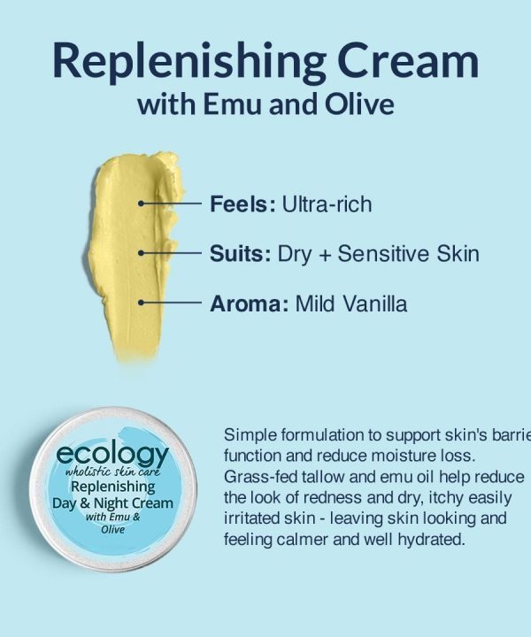 I have been using Replenishing Night creme with emu & olive oil over the past 9 months. I have extremely sensitive skin and had been through a whole lot of products testing them & wasting my money. I still had the same result which was skin that would become red and often break out. It was disheartening to say the least. I am not sure how I heard about Ecology but actually called Crystal and spoke to her about my skin. She was very sympathetic & listened, she suggested I try a few small samples. Well to say it was a success is an understatement! My skin is hydrated, smooth & no sign of redness or any reaction ☺️ I now subscribe so I never run out of this incredible “skin saving “ product! Thank you Ecology 🙌� Louise