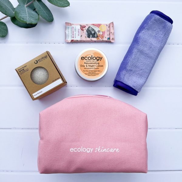 Into your Glow Bag you can choose – your favourite 70g (100mL) Ecology Moisturiser, a matching Makeup Removal Cloth and either a pure or charcoal Facial Konjac Sponge.