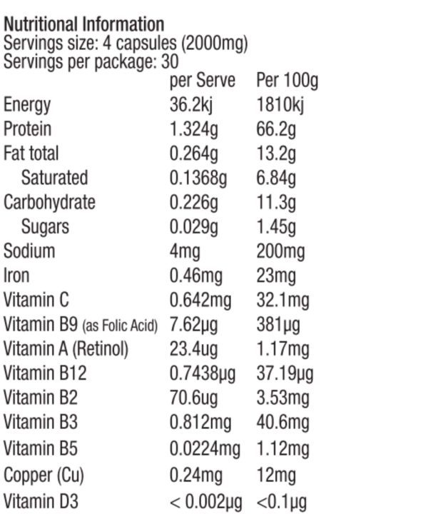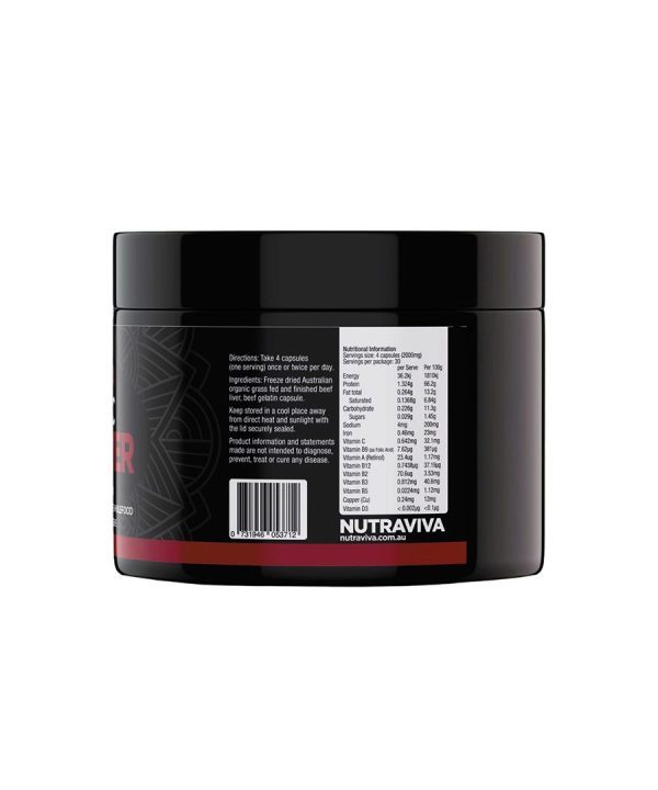Each jar of Organic Beef Liver Capsules contains 120 capsules ensuring 2000mg of beef liver powder per serving (4 capsules).