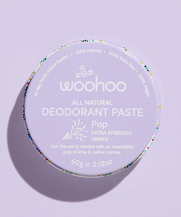 Woohoo Pop is an all-natural deodorant paste that is Woohoo’s most delicious extra strength Woohoo natural deodorant scent yet!
